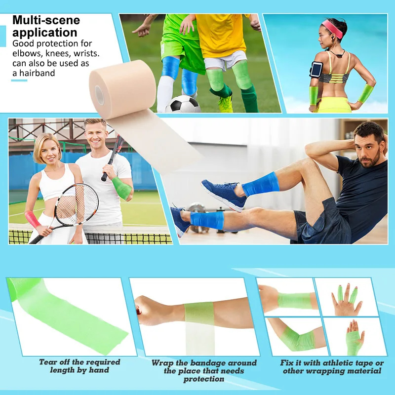 - Monipuoliset sovellukset: Esikääri urheiluteipin alle, pidä pehmusteet ja kylmäpakkaukset, estä hankausta, kiinnitä säärisuojat tai luo tilapäisiä otsapantaita.